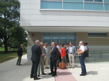 El consejero ha estado acompañado en su visita del alcalde de Oviedo, Wenceslao López; de la directora general de Planificación e Innovación Sanitaria, Concepción Saavedra, y de representantes de diversas asociaciones de vecinos de la zona para quienes este edificio fue una importante reivindicación.