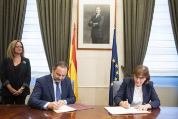 La consejera de Servicios y Derechos Sociales, Pilar Varela, y el ministro de Fomento, José Luis Ábalos, han firmado hoy en Madrid el convenio de colaboración para desarrollar el plan estatal de vivienda, que permitirá conceder ayudas por un importe de 61.904.700 euros hasta 2021. De esta cantidad, el Gobierno central aportará 47,62 millones y el Principado, 14,28.